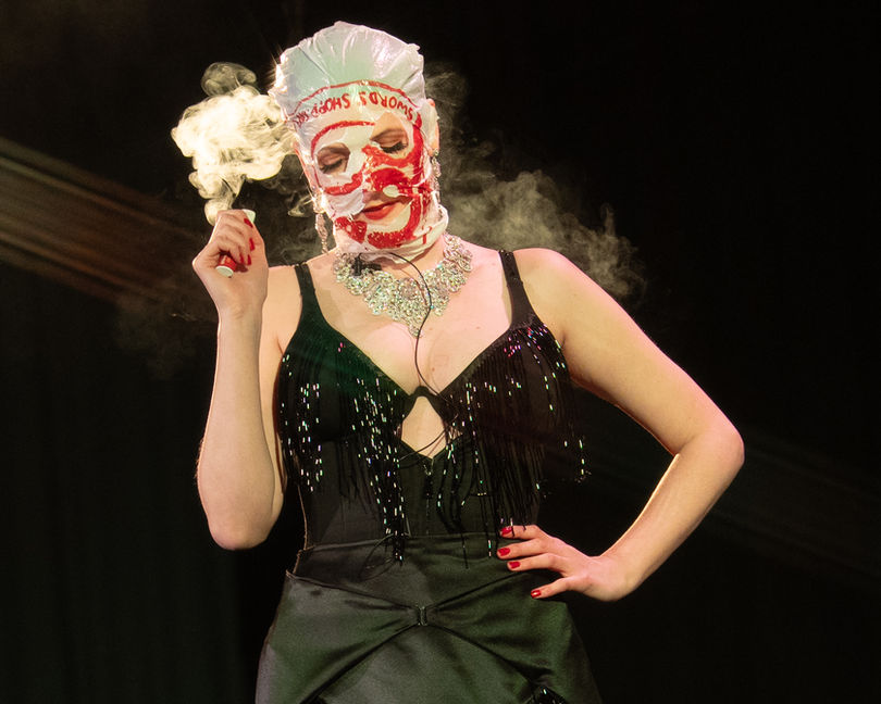 Clare Voyeur discovered The Blindboy Podcast at the beginning of the pandemic. It brought her a lot of joy and comfort during that time, as she was hating being an artist out of work and off stage due to the shut downs. Since Vancouver is filled with Irish people, it made perfect sense to Clare to appeal to them with a savage parody act of Blindboy, who is considered an Irish national treasure. This is not a typical burlesque act in any sense, rather a meta comedy tribute that lasts 14 mins instead of the typical 5 mins. Clare spent more than 60 hours just on the audio editing for this act, piecing together words and phrases from many of his podcasts. Hilariously, this is one of her most glamorous act to date, including feather fans and a whack of rhinestones - a perfect dichotomy for a man that wears a plastic bag on his head. You don't need to have listened to The Blindboy Podcast to enjoy this act, simply for how engaging and entertaining it is, though in the end you'll most definitely give it a listen. This act and concept is a true labour of love for Clare and wild art piece that continually evolves.